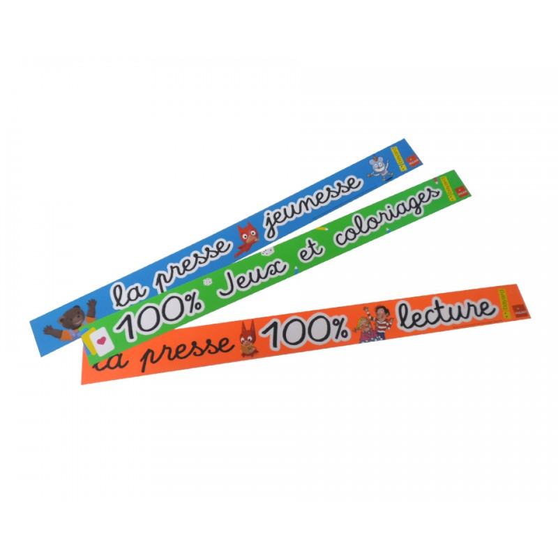 - Réglette en carton pour poser sur des linéaires ou sur des panières format 450 x 40 mm.